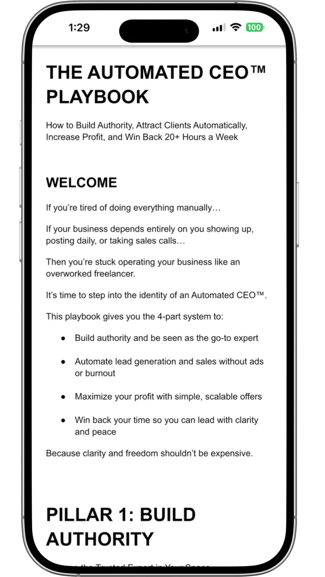 Download The Automated CEO Playbook + Growth Newsletter And Learn How To Install A Client Acquisition System That Books Qualified Calls Without You Chasing Leads Daily